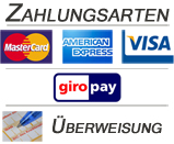 Preise incl. 19 % Mehrwertsteuer , Produkte mit ermässigtem Steuersatz incl. 7 % Mehrwertsteuer | zuzügl. 4,99 € Versandkosten. | Ab einem Warenwert von 20,00 € liefern wir innerhalb Deutschlands frachtfrei. | Bei Zahlung per Vorkasse zuzügl. 0,99 € Gebühr | Bei Zahlung per PayPal zuzügl. 0,99 € Gebühr | Bei Zahlung per Kreditkarte zuzügl. 0,99 € Gebühr | Bei Zahlung per Giropay zuzügl. 0,99 € Gebühr | * UVP des Herstellers | ** nur innerhalb Deutschlands